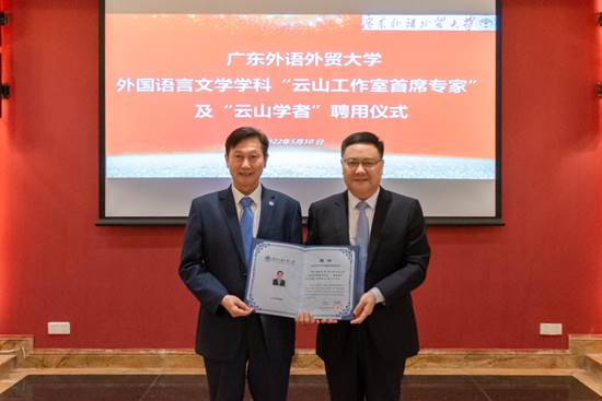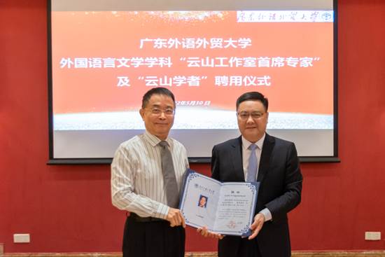 5月30日上午,广东外语外贸大学举行外国语言文学学科建设云山工作室首席专家、云山学者聘用仪式。