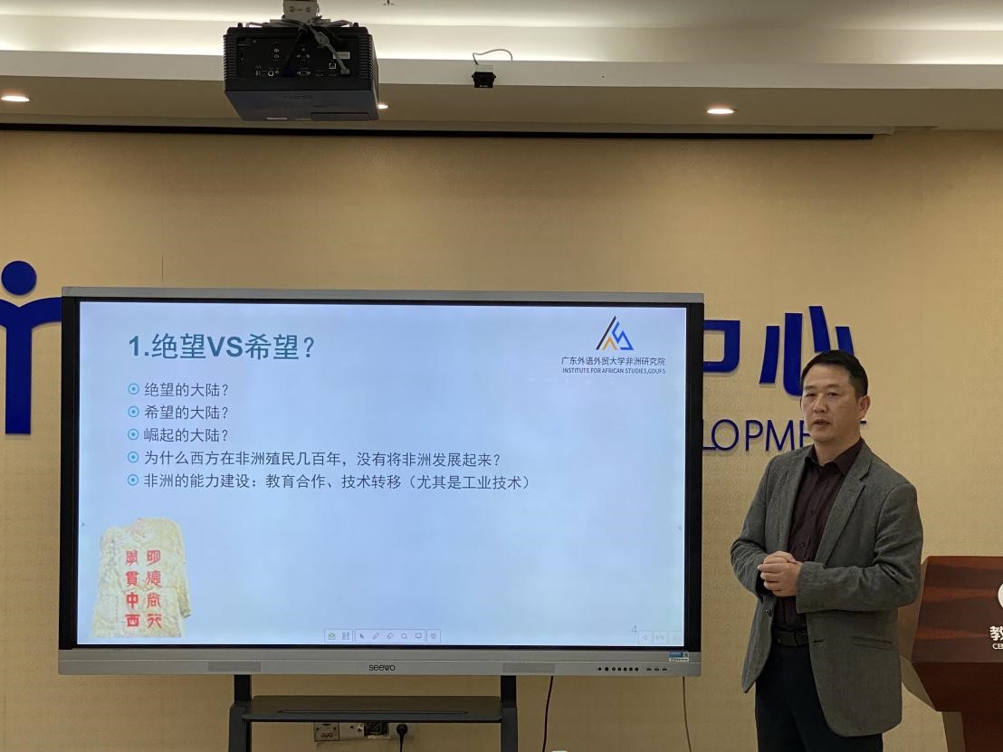 非洲研究院院长刘继森教授为中心党员辅导“新时代中非合作的战略机遇与风险防范”为主题的学习,让党员们深入了解了非洲发展所面临的机遇与挑战,并认识到了我校非洲研究院在响应国家发展战略,促进中非合作方面所做出的贡献。党小组成员通过讲座学习,启发思考教师发展中心在新时代“一带一路”背景下的机遇和挑战。