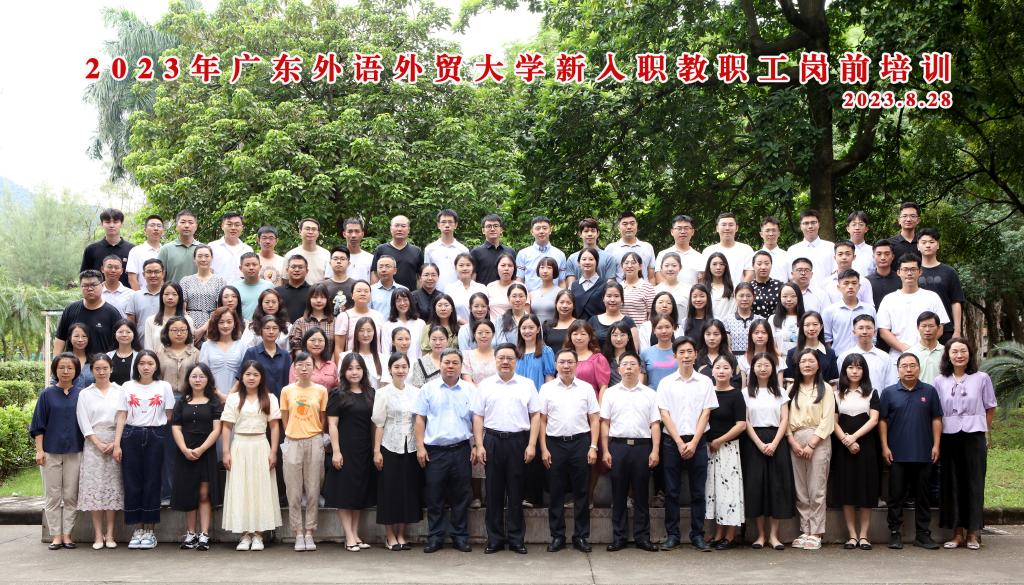 石佑启对新入职教职工表示欢迎和祝贺。他回顾建校历史、畅谈广外特色、细数广外成绩、构想广外蓝图,从何为广外、何以为师两个方面开启岗前培训第一课。他指出,当前广外已整体进入广东省高水平大学重点建设高校行列,将继续坚持守正创新,秉承“明德尚行、学贯中西”的校训精神,践行“卓越、诚信、包容、自信”的广外价值观,弘扬“进德、修业、务实、致远”的广外学风,培养拥有家国情怀、国际视野、过硬本领、创新能力、担当精神的国际化高素质人才。石佑启强调,全体广外人是一个事业共同体、发展共同体、情感共同体、生命共同体。学校坚持质量立校、人才强校、科研兴校、文化润校、依法治校。广大教育工作者要牢记习近平总书记对新时代教师的殷切希望和要求,做到“四个相统一”,争做“四有”好老师,做学生的“四个引路人”。他指出,育人之路,行稳致远;为人师者,从教以真;育人育才,服务大局。做新时代的“大先生”,要落实立德树人根本任务,做守初心、敢竞先、有担当的“师者”;要沉下心来,到学生中去、到团队中去、到真知中去,致力于做真学问、解决真问题;要胸有“大情怀”、拓宽“大视野”、作出“大贡献”,志存高远、追求卓越,坚持以“国家所需、未来所向、湾区所急、广外所能”为导向,发挥“多语种”和“多学科”优势,为国家经济社会高质量发展提供人才支撑和智力支持。