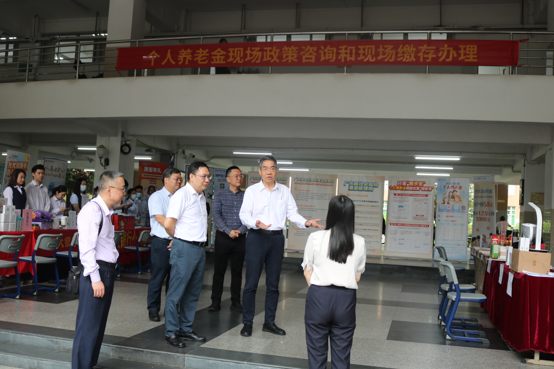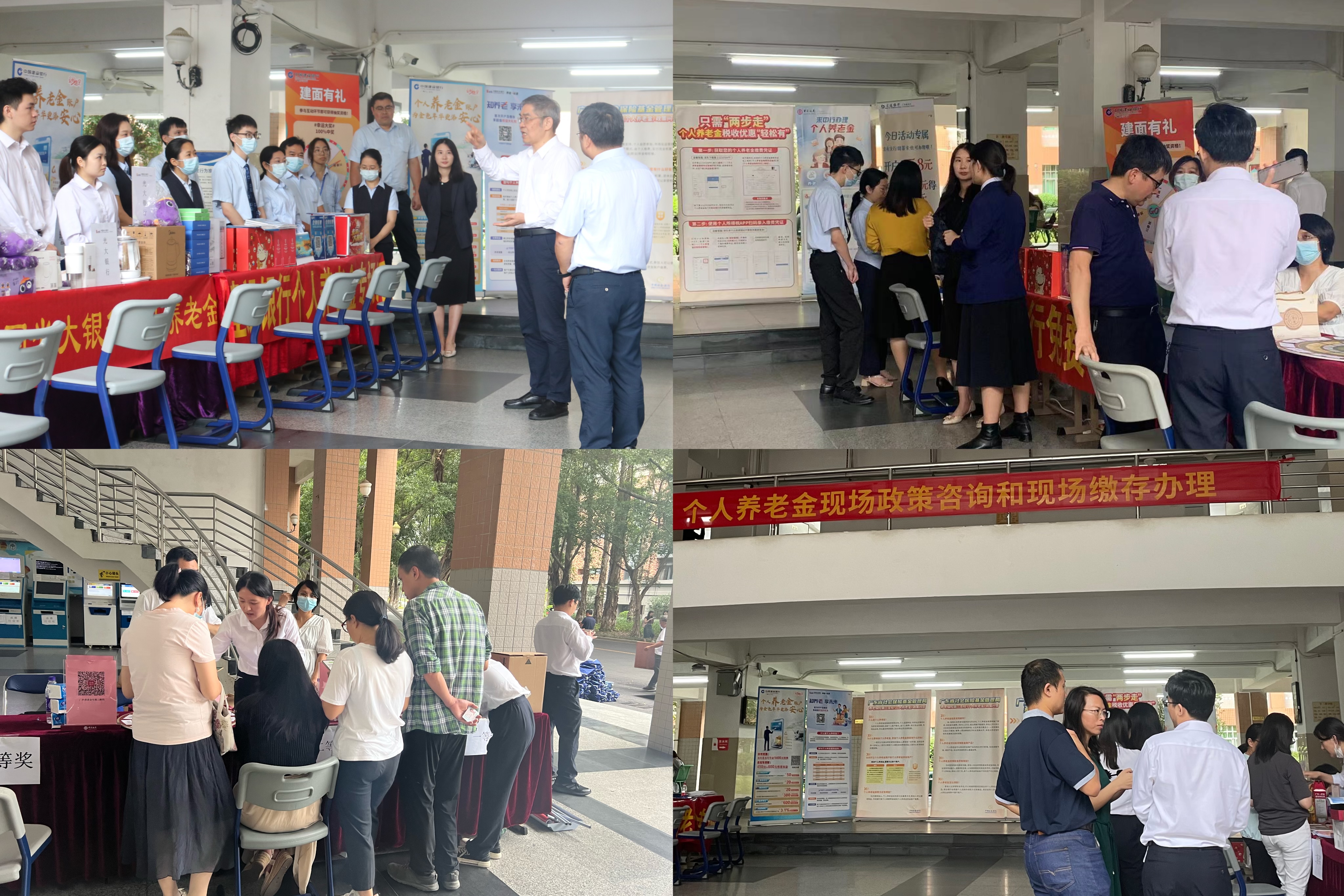 为贯彻党的二十大报告“发展多层次、多支柱养老保险体系”精神和《国务院办公厅关于推动个人养老金发展的意见》(国办发〔2022〕7号)要求,更好满足我校教职工多样化养老保障需求,使广大教职工及时享受个人养老金制度的惠民政策,2023年11月8日,我部联系广东省社会保险基金管理局(以下简称省社保局),协同相关银行组成服务团队,为教职工开展个人养老金现场政策咨询解答和开户缴存办理服务活动。