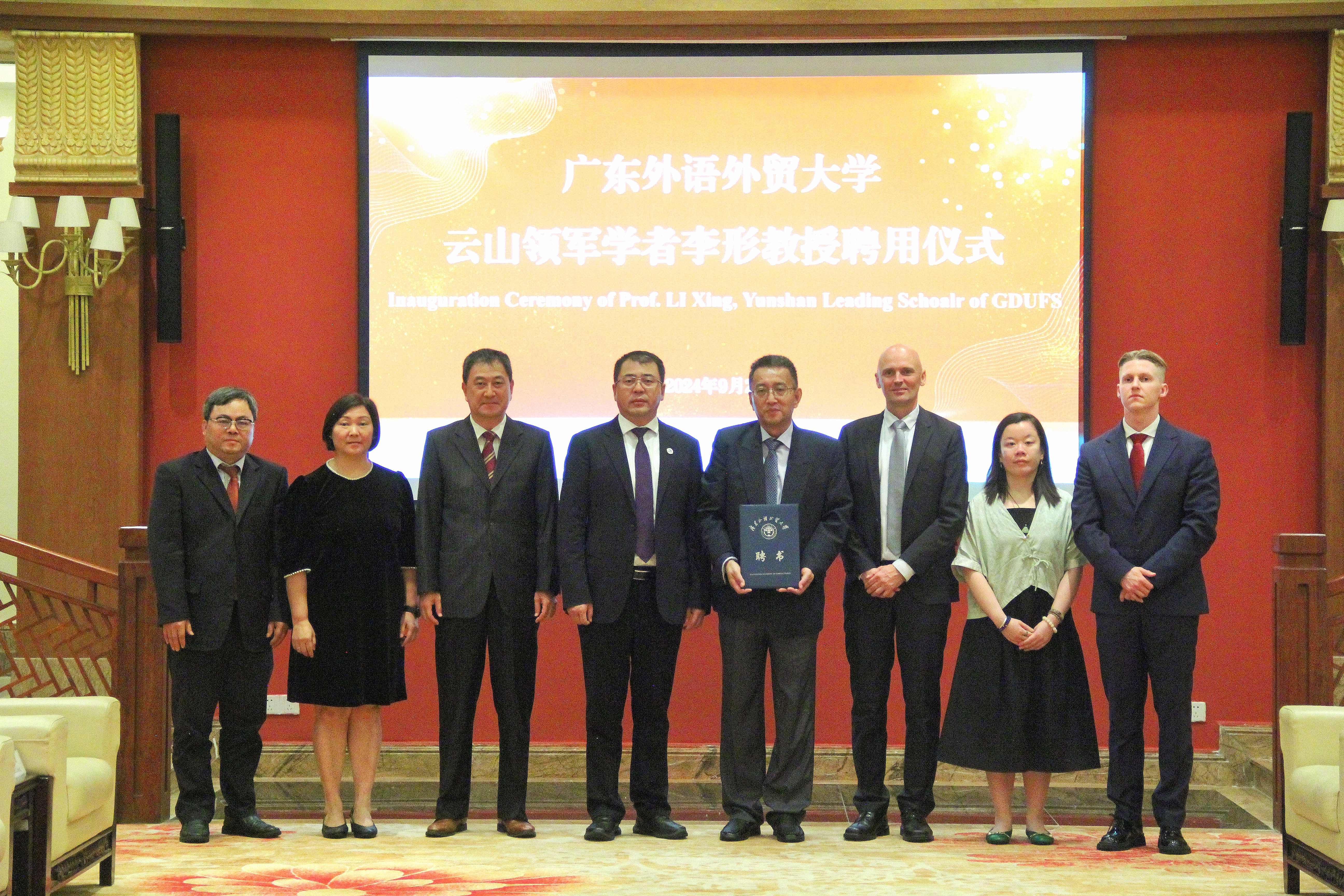 9月26日下午,我校云山领军学者李形聘用仪式在白云山校区行政楼一楼贵宾厅举行。丹麦王国驻广州总领事沈博(Søren Bindesbøll)、校长闫相斌教授、广东国际战略研究院院长隋广军教授、执行院长李青教授等出席聘用仪式。聘用仪式由人力资源部部长谢文新教授主持。
