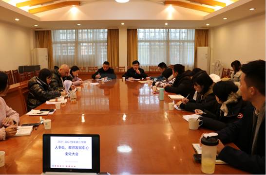 随后,毛国民处长对人事处、教师中心寒假期间的重点工作进行了介绍,并对新学期人事人才工作进行了布置。本次会议务实有效,为新学期人事人才工作指明了方向和目标。