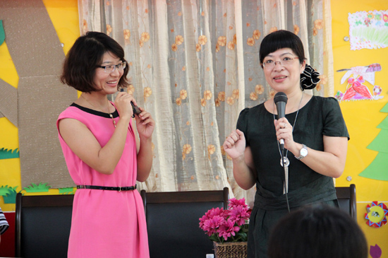 在仲伟合为孩子们送上节日礼物后,“Love & Hope”沙龙在幼儿园内举行。本次沙龙由人事处副处长、教师发展中心主任谢文新主持,国家高级家长指导师、国家二级心理咨询师黄琳,教育学博士、英语教育学院副院长吴岩,焦方太主讲。