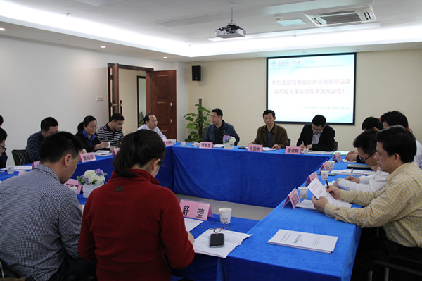 本网讯 3月20日下午,广东省教育厅“强师工程”推进工作座谈会在我校教师发展中心举行。省教育厅师资管理处处长傅湘龙、调研员廖荣辉,我校副校长许国彬、人事处处长阳爱民及来自南方医科大学等9所高校的人事部门负责人参加了会议,会议由阳爱民主持。