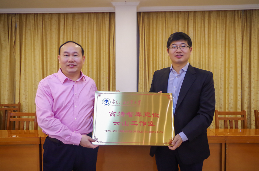 人事处副处长、高层次人才管理办公室主任宣读了校党委常委会关于设立云山工作室的决议,阳爱民分别为“法学学科建设云山工作室”“工商管理学科建设云山工作室”“高端智库建设云山工作室”工作室授牌,并为工作室办公室主任、培养对象代表颁发聘书。